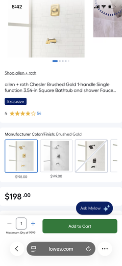 allen + roth Chesler Brushed Gold 1-handle Single function 3.54-in Square Bathtub and shower Faucet ( Valve Included )$110Chicago, IL