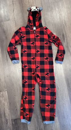 Cuddle Duds Kids Buffalo Fleece Pajamas, One Piece Zip Up Unisex Size L 10/12$11Montgomery, NY
