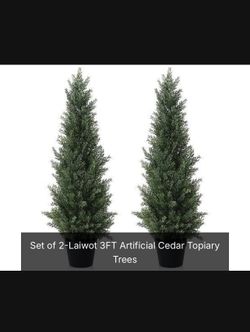 Set of 2-Laiwot 3FT Artificial Cedar Topiary Trees Outdoors Potted Fake Cypress Trees Faux Evergreen Plants for Home Porch Decor Retail $135$60La Mirada, CA