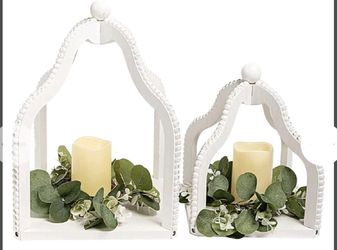 11"L x 11.5"W x 11"H HPC Decor 2 Pack Rustic Farmhouse Lantern Decor,White Candle Lanterns Decorative w/LED Lights String$40La Mirada, CA