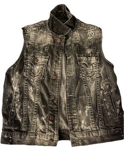 True Religion Vintage Men's Jimmy Western Denim Vest Jacket Black Concrete$60Lynn, MA