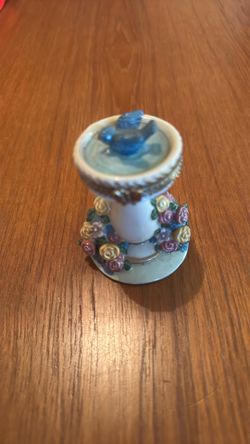 Vintage Ceramic Bird Birdbath Floral Pedestal Trinket Box. $10Park Ridge, IL