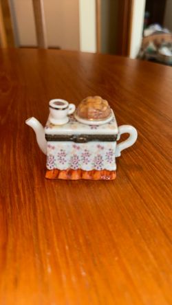 Unique, Jeweled Trinket Box ,Tea Pot With, Roses , Violets and Dragonfly. $15Park Ridge, IL
