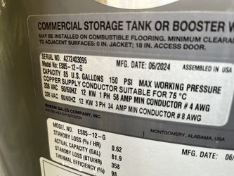 Rheem Commercial Water Heater ES85-12-G$3,000Seminole, FL
