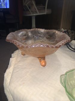 "Fenton" Stag and Holly~Three-Footed Glass Bowl~Pink Colored~Beautiful$40Trinity, NC