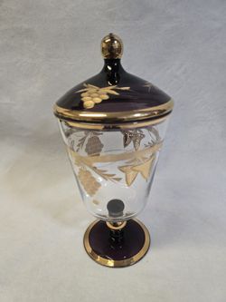 Czech Bohemian Footed Comport Lid Dish Amethyst Purple Glass