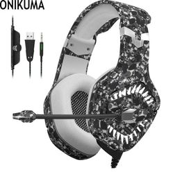 Gaming Headset, ONIKUMA K1B Pro Camo Elite Stereo Gaming Headset, Noise-canceling with Mic LED Lights Earphone for PS4, Xbox, PC and Switch, Grey