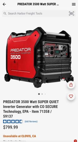GENERATOR PREDATOR 3500 Watt NEW UNOPENED SUPER QUIET $650Clovis, CA