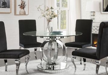 Brand New Clear Tempered Glass Top, Crossover Ring Styled Pedestal Base Dining Table$999Walnut, CA