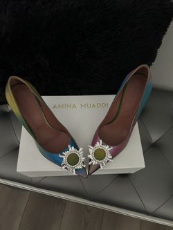 Authentic Amina Muaddi Begum Shadow Lollipop Multicolored Crystal Buckle Pump 39$500Philadelphia, PA