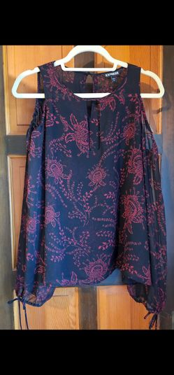 Express Women's Blouse Size L Long Sleeve Open Shoulder Black Red Lace Paisley Floral$10Stuart, FL
