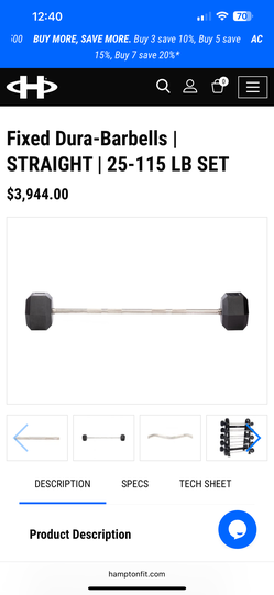 25lb-115lb Fixed Straight Dura Barbells Hampton Curl Bars (BRAND NEW)$2,250Anaheim, CA