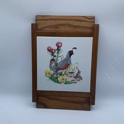 Vintage Wood Cutting Board with Quail Ceramic Tile Inlay, Nature Home Decor$24Naples, FL