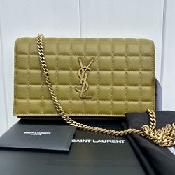 SAINT LAURENT CASSANDRE LARGE WALLET ON CHAIN QUILTED LEATHER GREEN GOLD NEW! $1,200Fort Lauderdale, FL