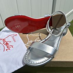 CHRISTIAN LOUBOUTIN SWEET JANE SANDAL FLAT SILVER LEATHER ANKLE STRAP 38.5 NEW$595Fort Lauderdale, FL