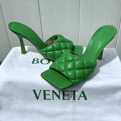 BOTTEGA VENETA PADDED LEATHER STRETCH MULE SANDALS PARAKEET GREEN SZ 37 NEW$499Fort Lauderdale, FL