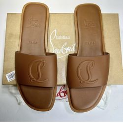 CHRISTIAN LOUBOUTIN CL MULE FLAT SANDALS EMBROIDERED LOGO BROWN LEATHER SZ 39 NEW!$595Fort Lauderdale, FL