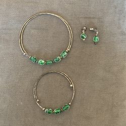 Green Glass Bead Necklace, Earrings And Bracelet $15Menifee, CA