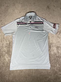 FJ FootJoy Blue Pink white Black Stripe Polo Golf Shirt Titleist Embroidery Golf Academy at Terra Cotta Size Small$25Round Lake Heights, IL