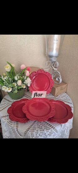 JUEGO DE 4 PLATOS MEDIANOS COLOR ROJO RUBY MARBELLA PRINCESS HOUSE ⚘️🌹 NUEVOS PERO NO TIENE CAJA $45Corona, CA