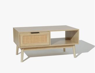 NEW/OPEN-BOX/UNASSEMBLED - LuxenHome 35.5" Rectangular Natural Boho Rattan Storage Coffee Table or TV/Entertainment Console/Stand$40Newport Beach, CA