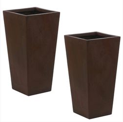 NEW OUTDOOR/INDOOR 2PC (Small to Med in Size) LuxenHome 18.5" Bronze MgO Tapered Square Planter Pots$40Newport Beach, CA