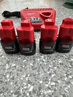 FS: (4) Milwaukee M12 Battery + Charger$100Fullerton, CA