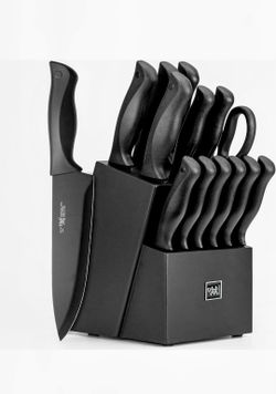 Knife Sets for Kitchen with Block, HUNTER.DUAL 15 Pcs Kitchen Knife Set with Block Self Sharpening, Dishwasher Safe, Anti-slip Handle, Black