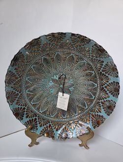 Akcam Glassware Co. Turkish decorative glass bowl, featuring reverse painting and embellished metallic detailing. $30Conroe, TX
