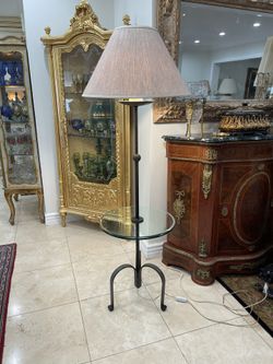 Beautiful Antique Cast Iron Floor Lamp Integrated Glass Side Table🌷 $175Los Angeles, CA
