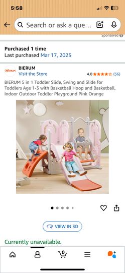 BIERUM 5 in 1 Toddler Slide, Swing and Slide for Toddlers Age 1-3 with Basketball Hoop and Basketball, Indoor Outdoor Toddler Playground Pink Orange$80Dallas, TX