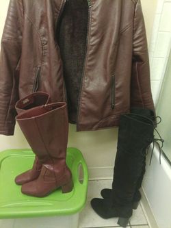 Leather Jacket Fur Inside Boots Size 6 Black Boots 6 1/2 Boots Are New Only Had Them On For A Couple Of Hours Black Ones Are New Jacket Is Like New $75Merced, CA