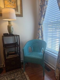 Beautiful turquoise wicker accent chair with a stunning coastal look. Perfect as a statement piece to add a pop of color to any room, sunroom, or cove$40Lewes, DE