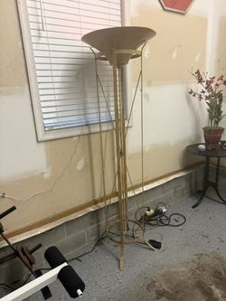 Tall Gold Torchiere Floor Lamp Beautiful and very heavy metal floor lamp in good condition. 70” tall with a gold finish and bowl top design. Uses $30Lewes, DE