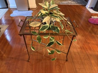 Sturdy metal plant stand perfect for displaying indoor plants. Rectangular top with open grid design and side handles. Strong and well made and holds $30Lewes, DE