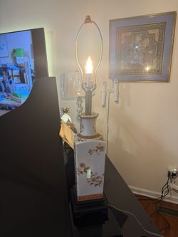 Vintage 1970s Porcelain Table Lamp – 31” Tall Beautiful vintage porcelain lamp from the 1970s featuring hand-painted floral designs in warm iron-red $70Lewes, DE