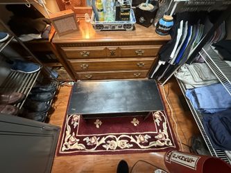Red Storage Trunk with Wheels Very sturdy solid wood red storage trunk with black metal hardware. Solidly built and heavy, with wheels on the bottom $200Lewes, DE
