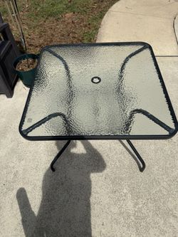 Outdoor patio table in excellent condition. Tempered glass top with sturdy metal frame. Very clean and well taken care of. Features a center umbrella $40Lewes, DE