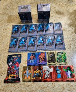 2024 SKYBOX METAL UNIVERSE MARVEL CARD LOT OF NINE PLUS TWELVE OPENED PACKS & ONE UPPER DECK SPIDER-MAN HANGER PACK. ALL IN NM - MINT CONDITION. $30Jacksonville, FL