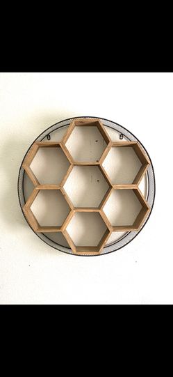 Large World Market Round Metal and Wood Honeycomb Wall Storage 27” $55Kingsburg, CA