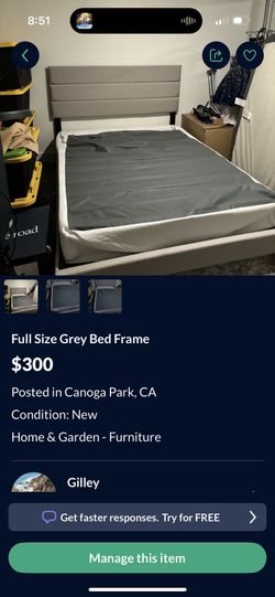 Full Size Grey Bed Frame Good Condition$80Canoga Park, CA