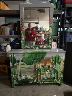 Hand Painted Cabinet And Mirror $400Clinton, IN