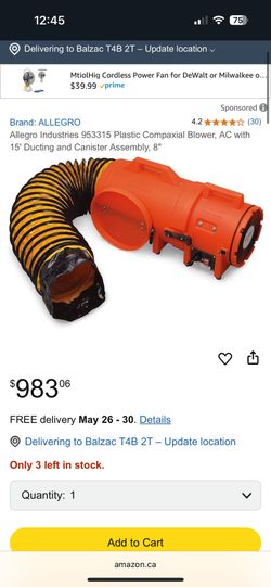 Allegro Industries 953315 Plastic Compaxial Blower, AC with 15' Ducting and Canister Assembly, 8"$700Duluth, GA