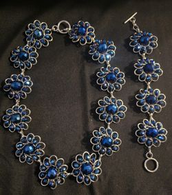 Flower Beaded Necklace And Bracelet Silver And Blue$30Aurora, IL