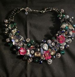 Vintage Rhinestone & Simulated Onyx Silver & Red Floral Green Choker Necklace$30Aurora, IL