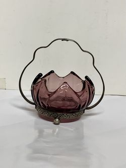 Art Nouveau Silver-Plated Sugar Bowl with Handle & Purple Glass Insert$58Fontana, CA