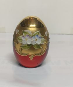 vintage Ferro & Lazzarini Murano ruby red glass egg paperweight. It features hand-painted gold and enamel floral decoration. The piece stands approxi$40Fontana, CA