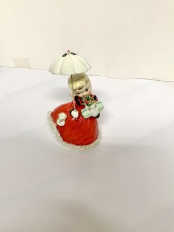 Napco Christmas Girl Figurine with her ceramic umbrella. This girl is in great shape with no chips or cracks.Her red dress she's carrying a gift in h$58Fontana, CA