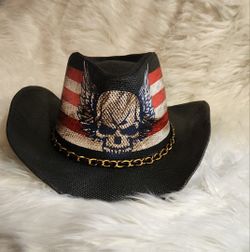 Saddleback Premium Straw Hat Unisex Wing Skull Black Red White Stripes$21San Antonio, FL