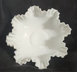 Fenton White Milk Glass Candy Dish Hog Nail Crimped Ruffled Edged Bowl$18San Antonio, FL